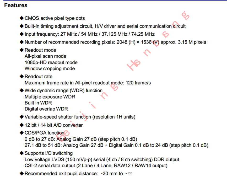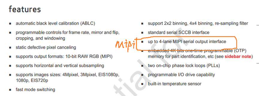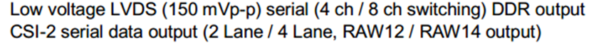 - 查看sensor支持LVDS还是mipi接口。实际操作为查看datasheet,一般前几页会有支持的接口名称,或者搜索LVDS,然后搜索DOP1或者DOM1。LVDS的接口使用名称叫做DOPX/DOMX,而MIPI的接口一般为DMOXP/DMOXN。