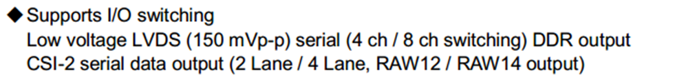 由配置可知,imx123支持LVDS与MIPI,详细配置如下: