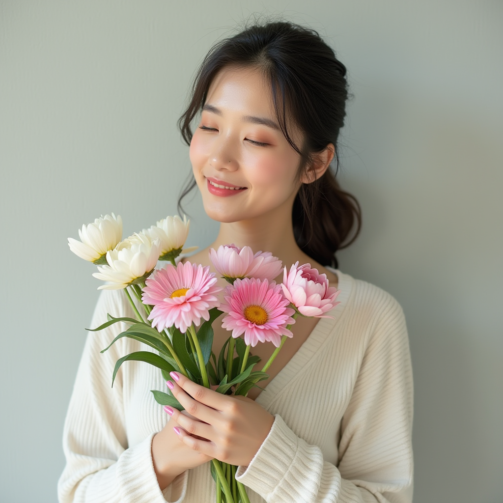 3.2 提示词参考 1 2 3 一位美丽的亚洲女性手中握着花朵,韩模风格,真实照片风格,全身照。 pretty Asian woman was holding the flowers in her hands, Korean Model, real photo style, full body shot.