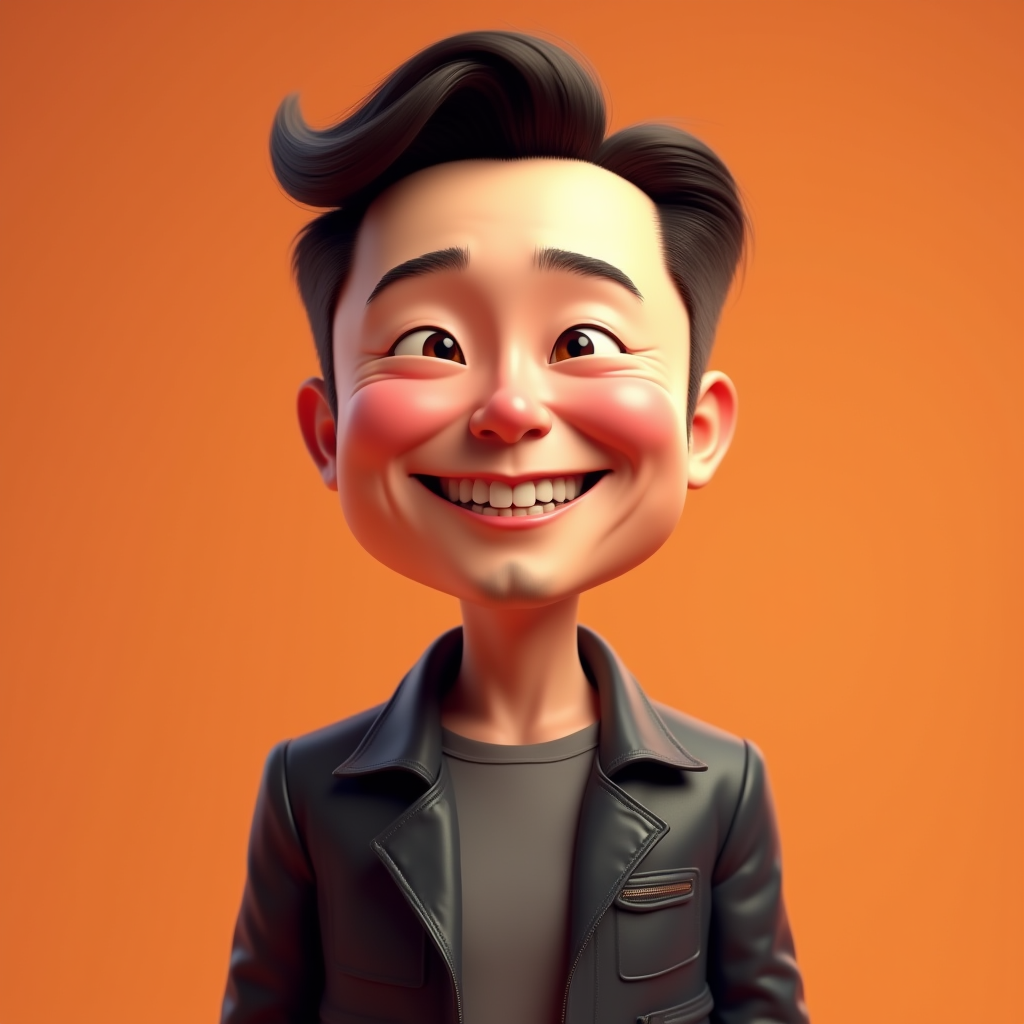 1 2 埃隆·马斯克,成功人士,亚洲人,快乐,纯色背景,C4D 渲染,皮克斯风格,9:16。 Elon Musk, successful person, Asian, happy,solid color background, C4D rendering, Pixar,9:16.